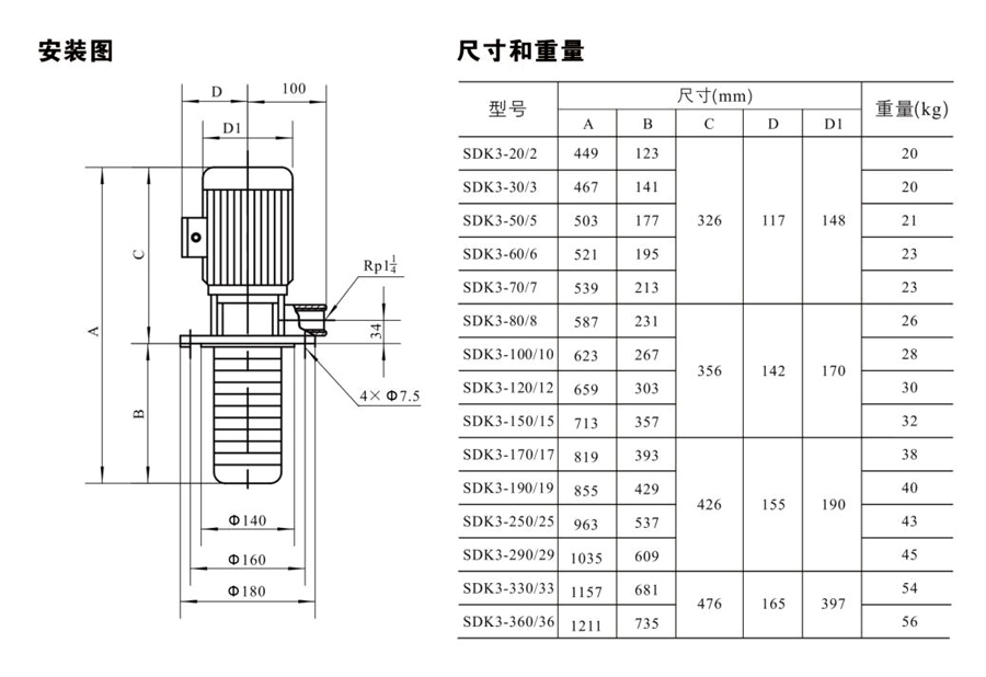 SDK3/SDKT3為配用標準電機的非自吸立式多級離心泵,電機軸和泵軸用聯(lián)軸器直接聯(lián)接的結(jié)構(gòu)。為滿足水槽或容器的安裝深度,可安裝空套的腔體來改變泵本身的侵入 深度。