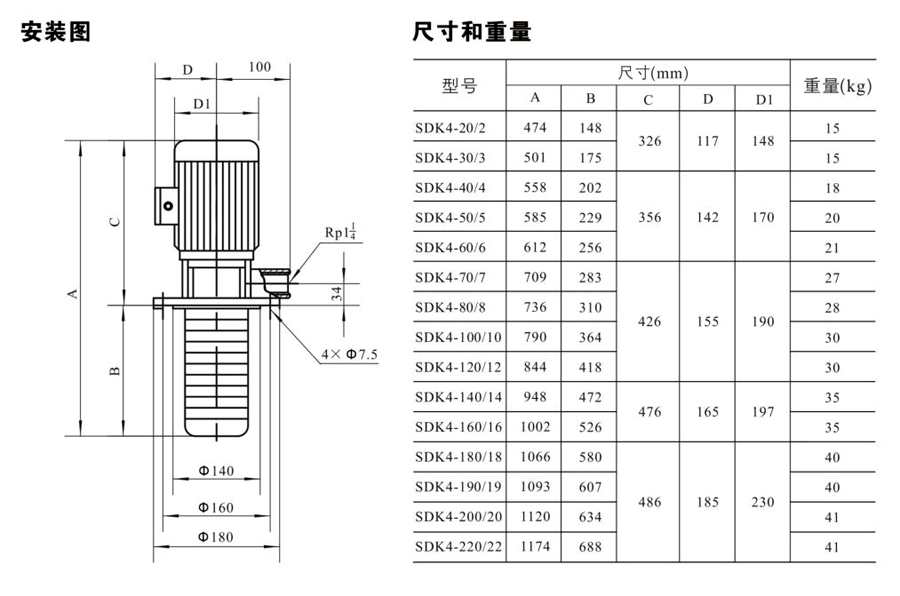 SDK4/SDKT4為配用標(biāo)準(zhǔn)電機(jī)的非自吸立式多級(jí)離心泵,電機(jī)軸和泵軸用聯(lián)軸器直接聯(lián)接的結(jié)構(gòu)。為滿(mǎn)足水槽或容器的安裝深度,可安裝空套的腔體來(lái)改變泵本身的侵入 深度。